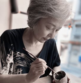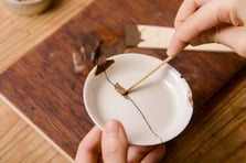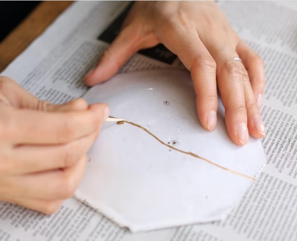 À Lyon, elle restaure des céramiques et porcelaines cassées selon la méthode traditionnelle du kintsugi, et elle anime également des ateliers pour transmettre cet art.