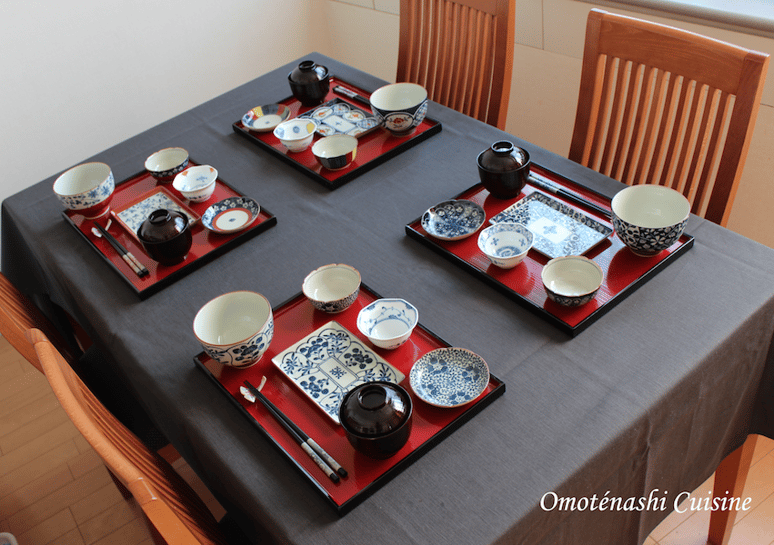 Les repas traditionnels Ichijyu-sansai 一汁三菜 qui signifie littéralement "1 soupe et 3 plats" est la base du régime alimentaire quotidien des japonais depuis la 8e siècle. Il est possible de recevoir à partir de 2 personnes en semaine pour un cours de 2 à 3 heures sur mesure, suivi par une dégustation avec ma service d'art de la table japonaise.